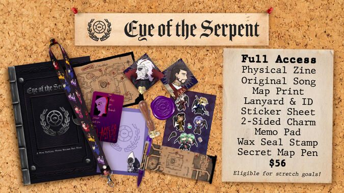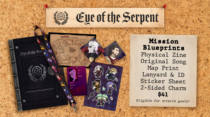 Eye of the Serpent will feature approximately 16 artists, 10 writers, and 5 merch artists.The zine will be available in both a physical and digital form.This is a for-charity zine. Zine proceeds will benefit the Trevor Project. $1 from each item sold will be matched by mods and donated to Billy Kametz's GoFundMe.